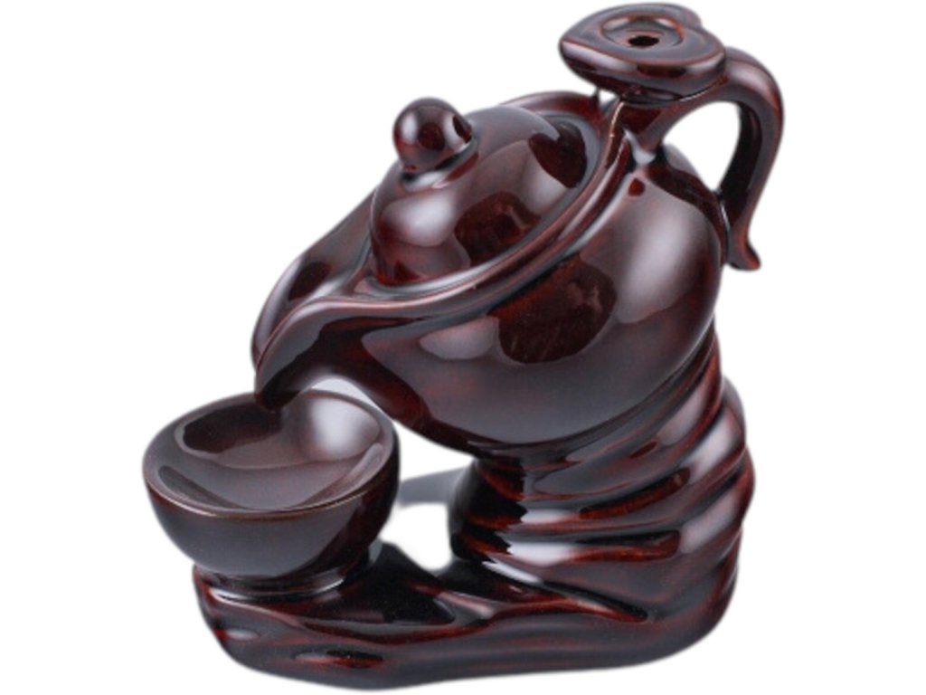 Originální stojan na vonné kužely funguje jako fontána na tekoucí dým. Keramický stojan je navržen ve tvaru čajová konvice a šálky. Hořící kužel produkuje dým, který je těžší jako vzduch. Dým prochází otvorem a tvoří nádherný dýmící vodopád, který se line skrz konvici do šálku.