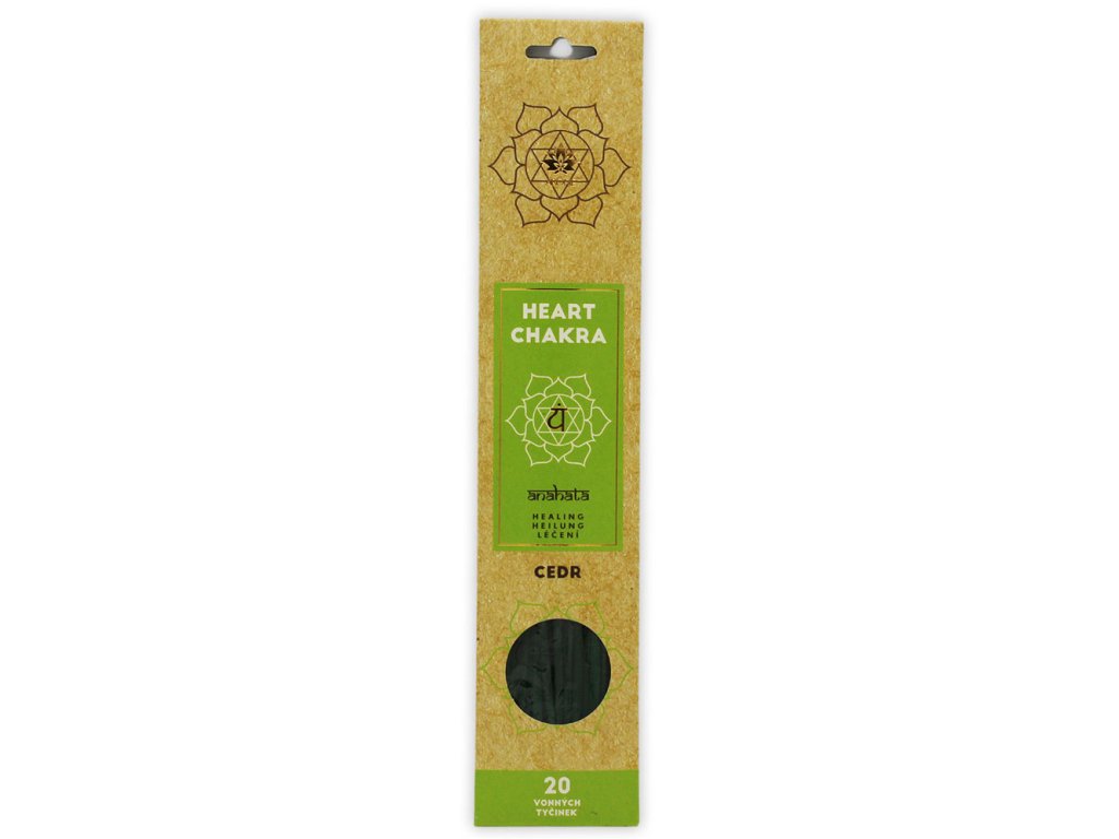 Vonné tyčinky Heart Chakra jsou určeny ke stimulaci srdeční čakry, která je spojována s láskou, soucitem a vnitřní harmonií. Jemná, sladká vůně cedru vytváří příjemnou a uklidňující atmosféru, ideální pro meditaci, relaxaci nebo chvíle odpočinku doma.