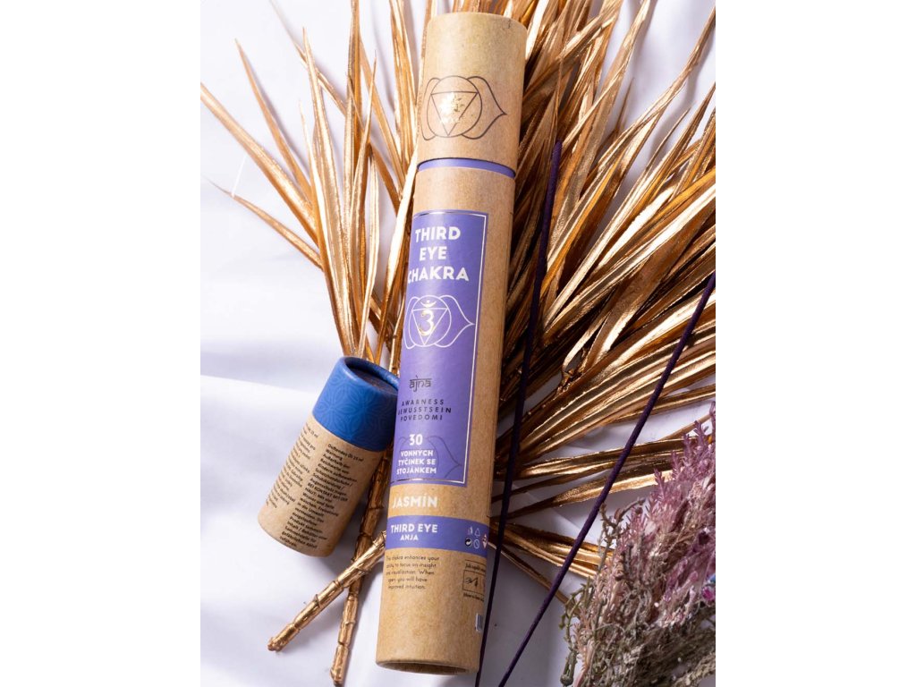 Doutnající tyčinka s vůní jasmínu navodí nevšední výjimečnou atmosféru pro tu nejlepší meditaci a odpočinek a pomůže stimulovat čelní čakru, neboli čakru třetího oka. V Hinduistickém učení věří, že pokud jsou všechny čakry v našem těle v harmonii, je harmonický i život člověka.