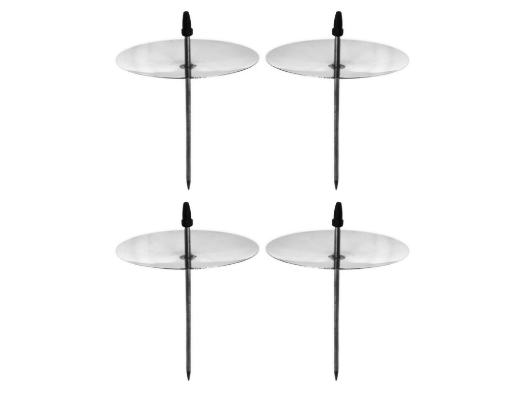 4 kusy kovových stříbrných lesklých bodců na svíčky, průměr misky 5,5 cm.