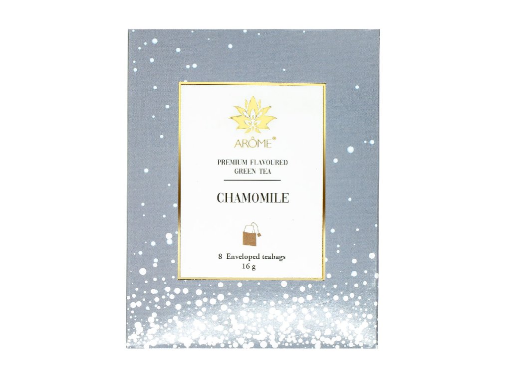 - Heřmánek, složení: 35% heřmánek, 30% citrónová tráva, 35% zelený čaj.