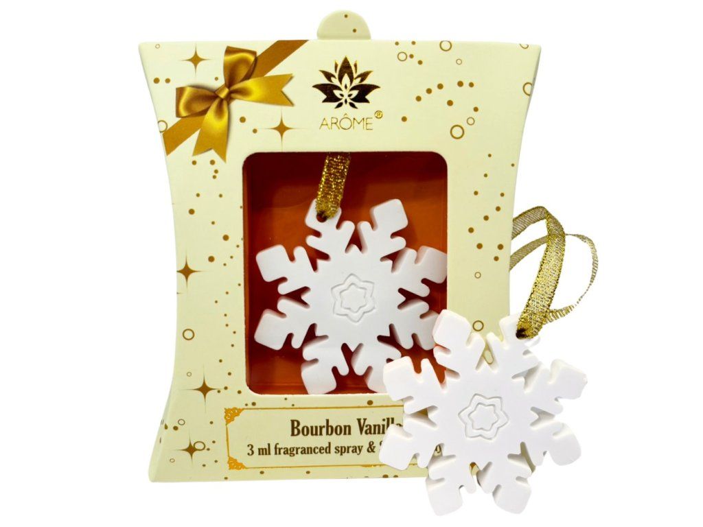 Dárkové balení vonného jílu ve tvaru vločky a 3 ml spreje s vůní. Vonný jíl stačí postříkat a zavěsit nebo položit na vhodné místo. Vůně vanilky se bude postupně uvolňovat do prostoru a bude zároveň vkusnou voňavou dekorací. Vůně vanilky patří k těm nejoblíbenějším, zejména na Vánoce.