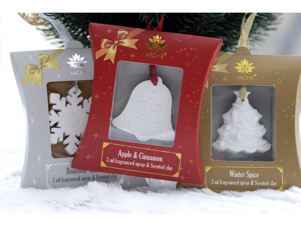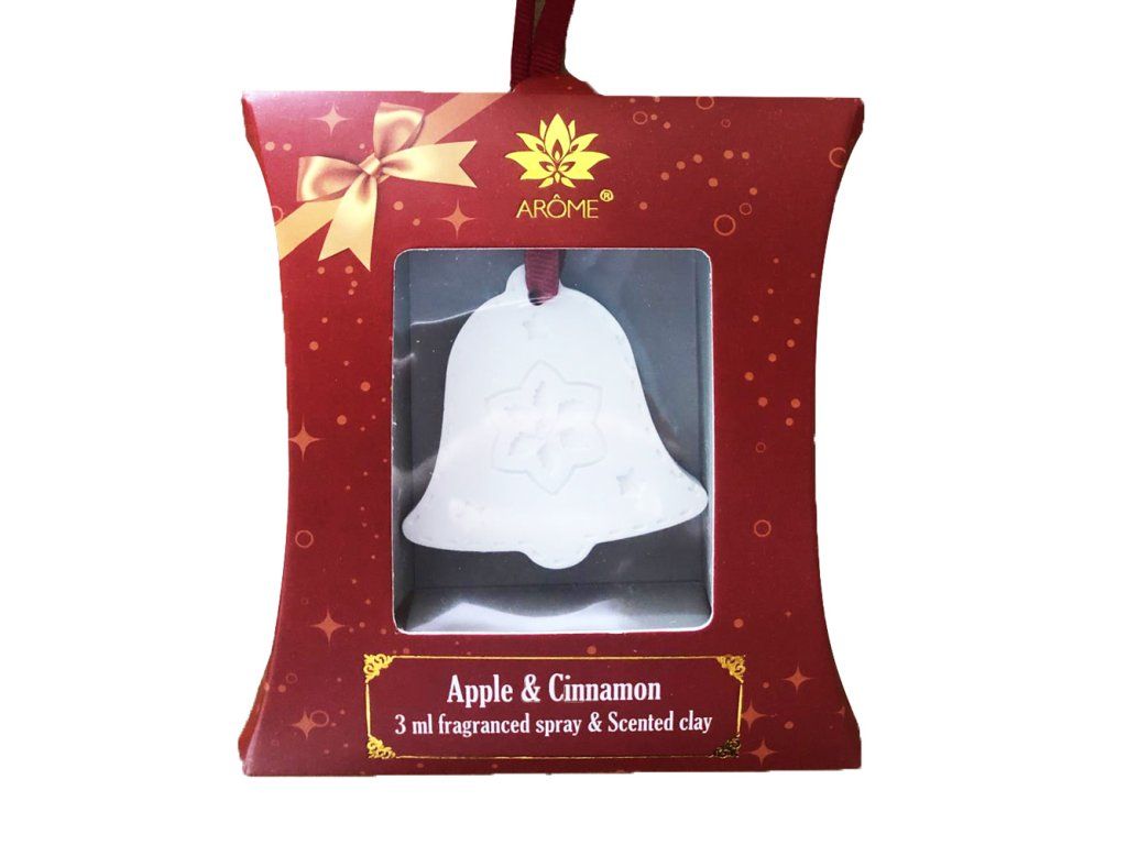 Dárkové balení vonného jílu ve tvaru zvonečku a 3 ml spreje s vůní. Vonný jíl stačí postříkat a zavěsit nebo položit na vhodné místo. Vůně jablka a skořice se bude postupně uvolňovat do místnosti a navodí krásnou podzimní i vánoční atmosféru.