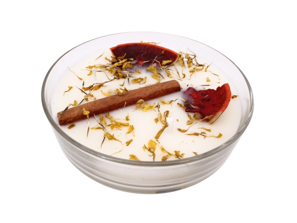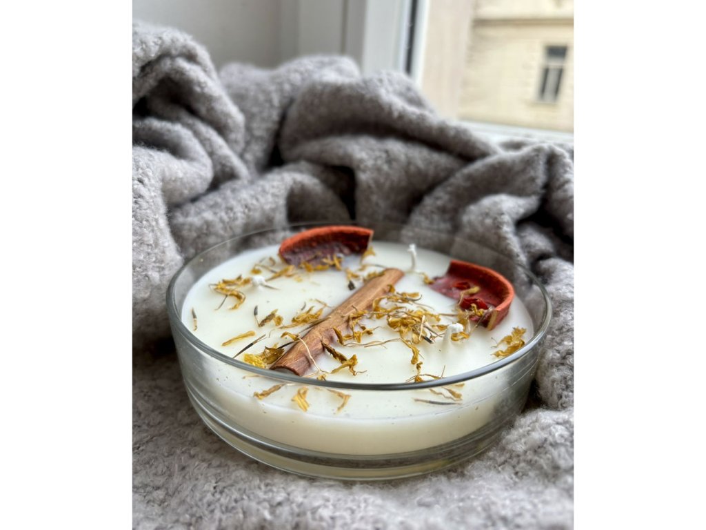 Ve vosku jsou pro potržení přírodního designu použity větvičky, bylinky či koření. Svíčka je tak skvělým luxusně vypadajícím doplňkem každé domácnosti, a i vhodným dárkem. Je balena v atraktivní papírové krabičce.