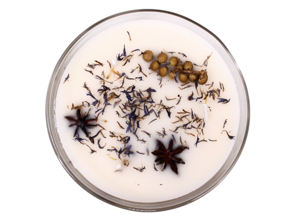 Ve vosku jsou pro potržení přírodního designu použity větvičky, bylinky či koření. Svíčka je tak skvělým luxusně vypadajícím doplňkem každé domácnosti, a i vhodným dárkem. Je balena v atraktivní papírové krabičce.