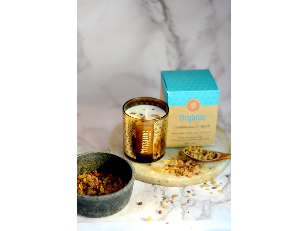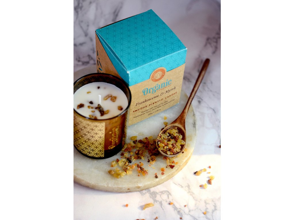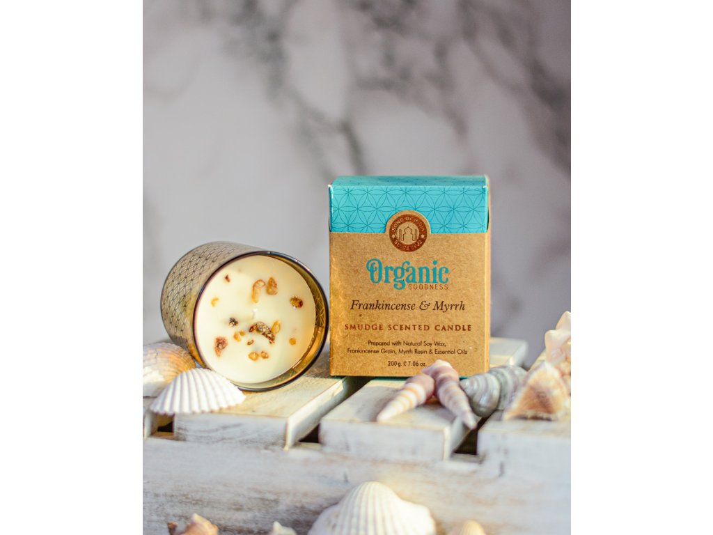 Sójové svíčky Organic Goodness jsou díky použitým esenciálním olejům vhodné pro aromaterapii a relaxaci. Vonná svíčka s vůní kadidla a myrhy s nádechem citrusů povznáší mysl a zlepšuje náladu.