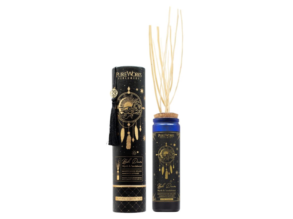 Tento vrbový difuzér absorbuje vonnou tekutinu z nádoby a uvolňuje vůni do okolního vzduchu. Myrha a santalové dřevo skvěle uklidňují, uzemňují a pomáhají vám dosáhnout pocitu klidu.