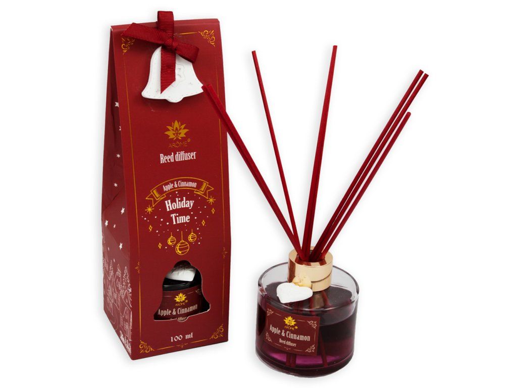Osvěžovač vzduchu v podobě tyčinkového difuzéru s vůní jablka a skořice. I v koupelně, v obývacím pokoji nebo třeba na chodbě to může krásně vonět.