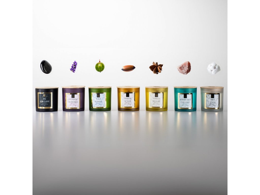 Svíčky jsou vyrobeny ze 100 % přírodního sójového vosku. Svíčka je umístěna je v barevné skleničce s dřevěným víčkem. Tato sada netradičních vůní je za zvýhodněnou cenu a je to skvělý nápad na luxusní dárek.