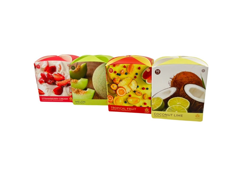 - Příjemná vůně jahody, melounu, tropického ovoce a kokosu s limetkou