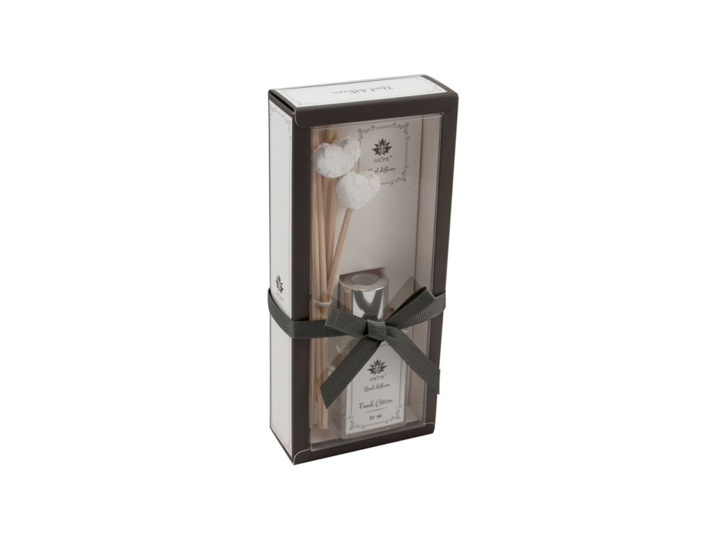 Zajímavou vůni čerstvé bavlny vám poskytne tyčinkový difuzér Fresh Cotton. Vůně se postupně uvolňuje a osvěží váš byt nebo kanceláře. Vše je zabaleno v dárkové krabičce v decentní barvě s šedou mašličkou. Tyčinkový difuzér je skvělý tip na vánoční dárek. Udělá radost i těm nejnáročnějším.
