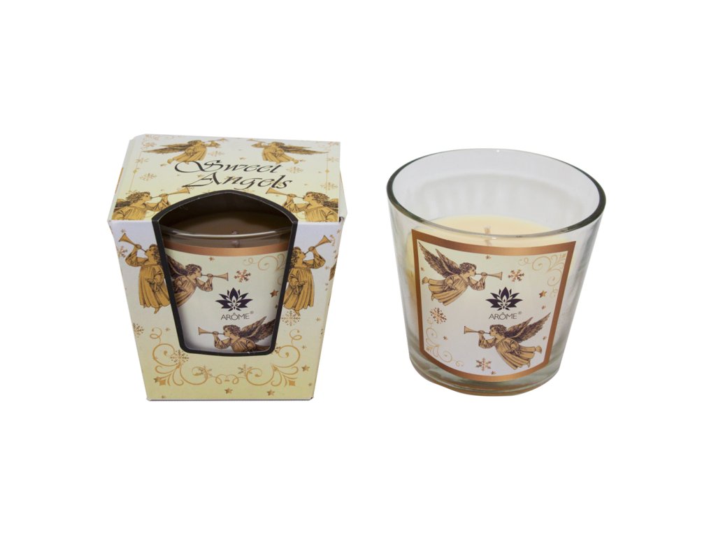 Svíčka je balena v dárkové krabičce zdobené vánočními andělíčky. Hezký vánoční dárek, který každý rád najde pod stromečkem.