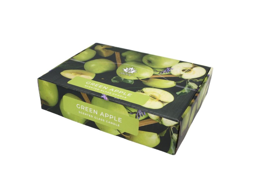 Baleno v barevné papírové krabičce. Vonná svíčka Green Apple může být skvělým dárkem.