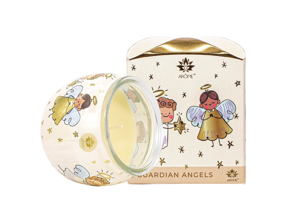 Plamínek vonné svíčky s oblíbenou vánoční vůní brusinky a kardamonu provoní a rozzáří domácnost a vytvoří chvíle hřejivé domácí pohody. Vonná svíčka ve vánočním dekoru s andělíčky doladí vánoční výzdobu interiéru.