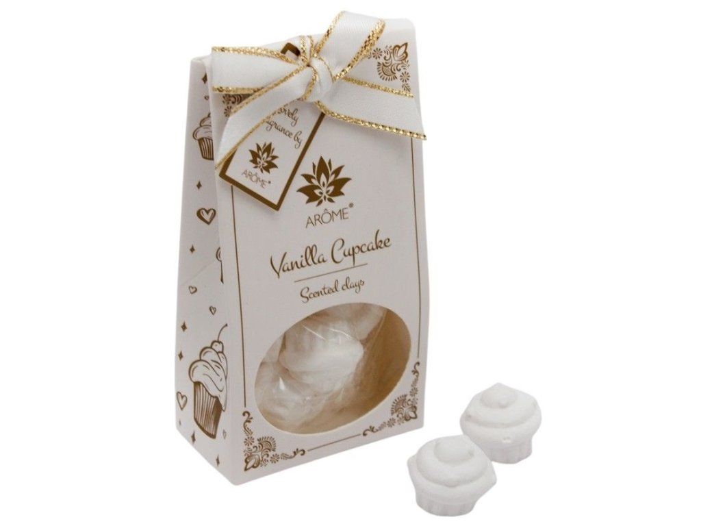 Mějte doma vůni vanilkových dortíků. Stačí použít vonný jíl, který postupně uvolňuje aroma do ovzduší. Balení obsahuje 6 ks jílu ve tvaru dortíků (cupcakes), které položíte kdekoliv v interiéru, šatní skříni, či prádelníku.