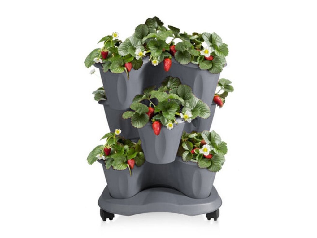 Modulární květináč TRIFOGLIO umožňuje pěstovat květiny, bylinky nebo jahody na více úrovních. Kapacita 3 x 6 l.