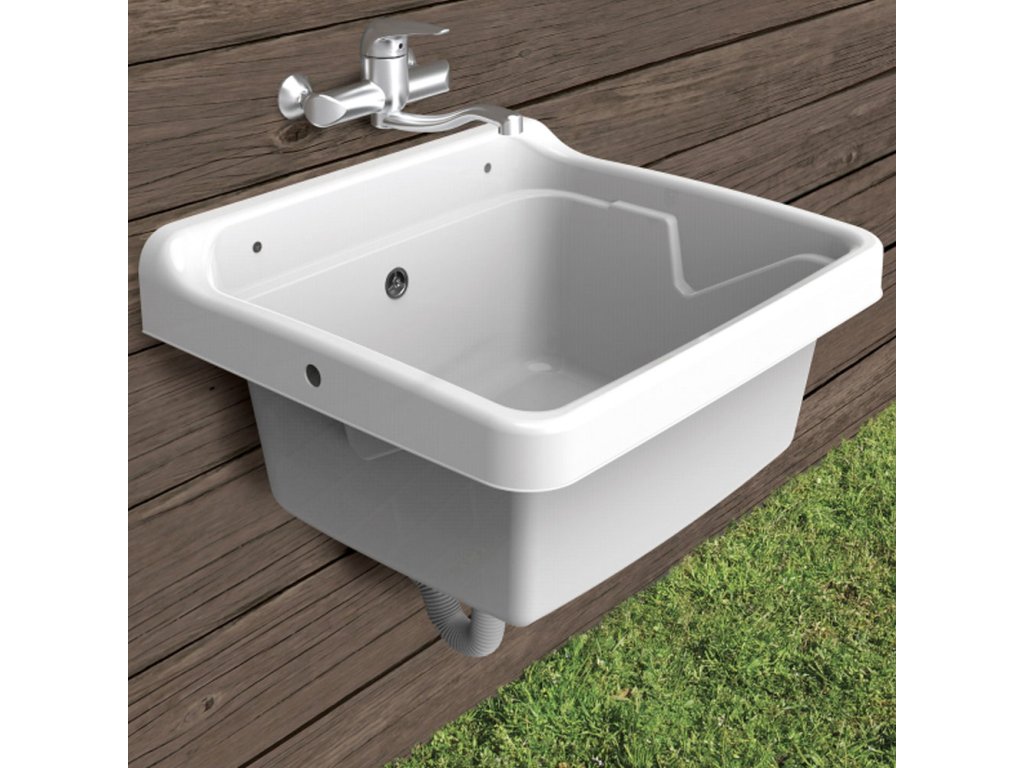 Umyvadlo může být instalováno v garáži, sklepě, na dvoře, zahradě atd. Plastová nástěnná výlevka/umyvadlo se sifonem je vhodné také pro koupání menších domácích mazlíčků.
