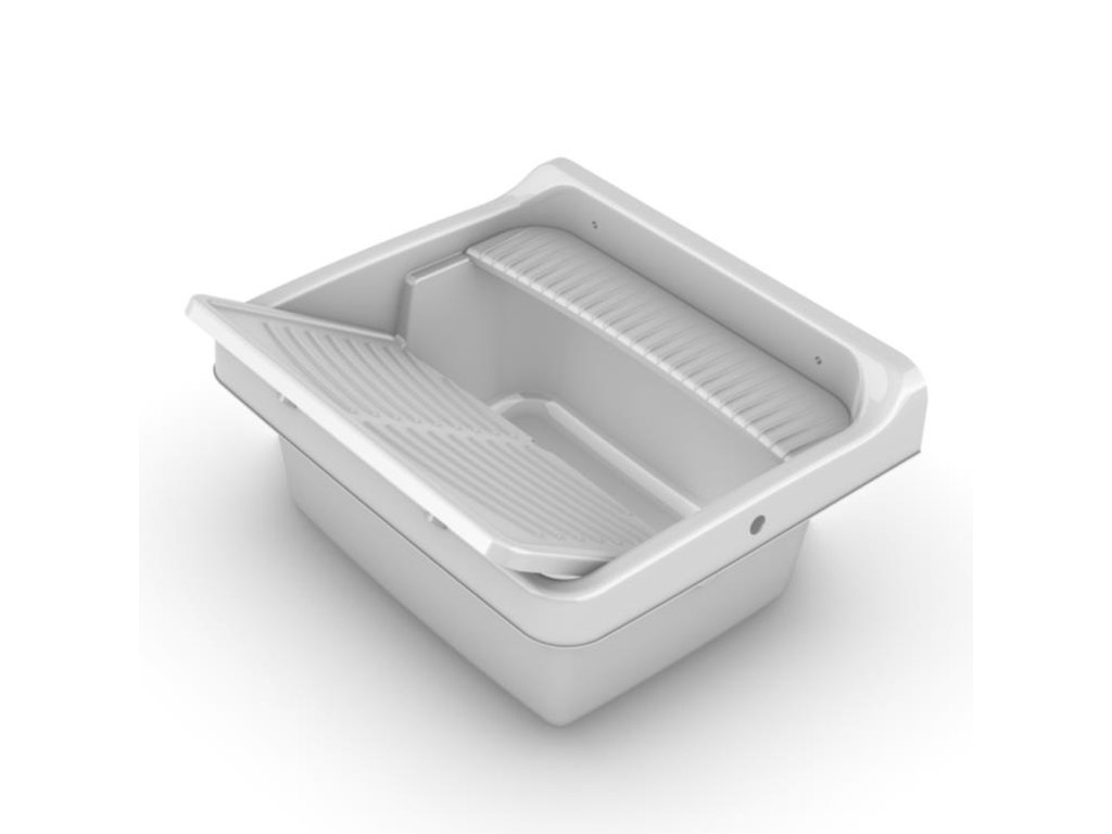 Plastové nástěnné umyvadlo/výlevka pro vnitřní i venkovní použití, připravené k upevnění na zeď. Praktické a všestranné, ideální také pro ty, kteří nemají potřebný prostor pro dřez může být doplněný skříňkou Artu. Vyrobeno z prvotřídních pryskyřic, vybavené sadou sifonu, distanční vložkou, policí na mýdlenku a vyjímatelnou mycí deskou.