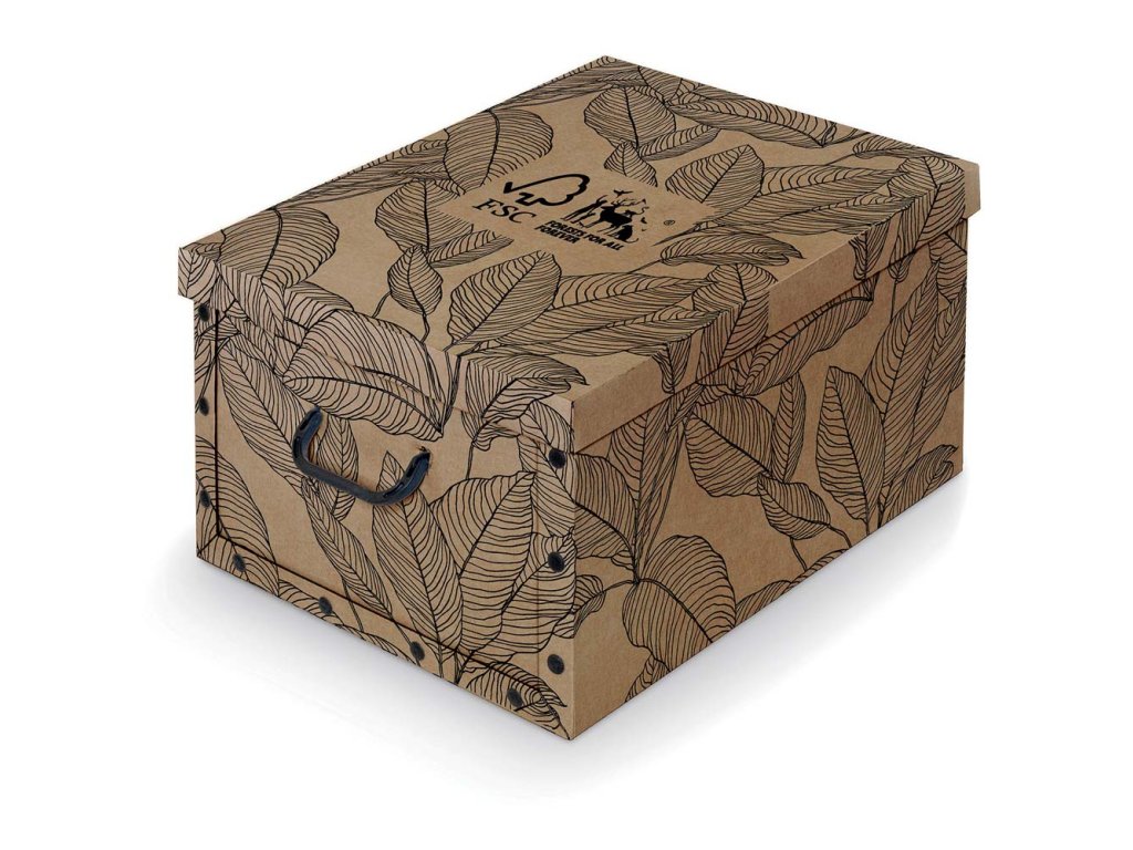 Úložný box s víkem a držadly FOREST, kartonový, hnědý, rozměry 39 x 50 x 24v cm.