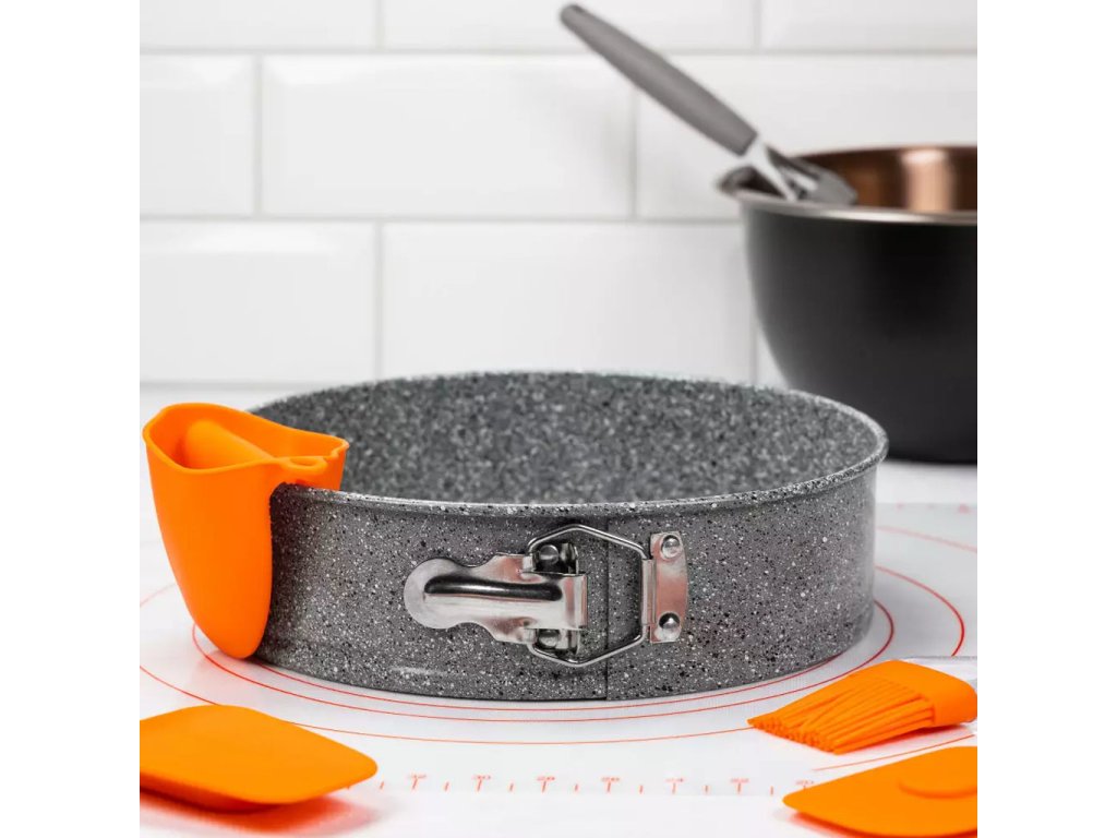 Forma na dort je vyrobena z ocelového plechu a má speciální nepřilnavý povrch GRANITE COATING v šedé barvě. Má klip pro rychlé zavírání a otevírání, což velmi usnadňuje vyjmutí upečeného dortu. Materiál, ze kterého je forma vyrobena, se jen těžko poškrábe a díky nepřilnavým vlastnostem výrazně usnadňuje proces pečení.