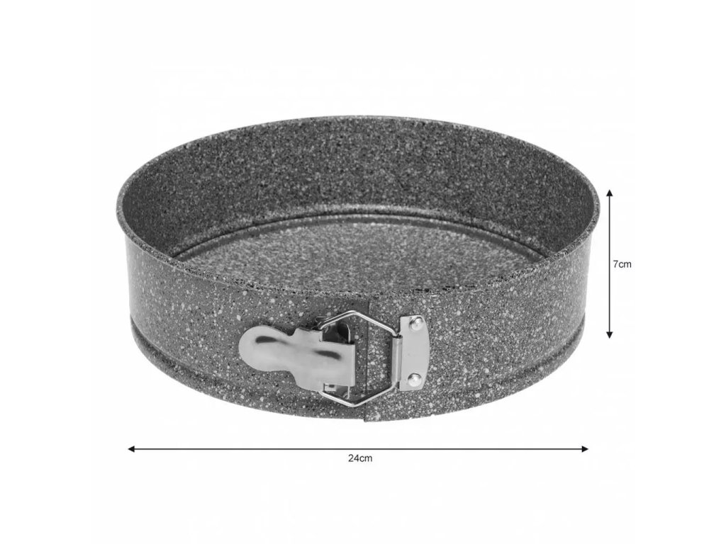 Forma na dort je vyrobena z ocelového plechu a má speciální nepřilnavý povrch GRANITE COATING v šedé barvě. Má klip pro rychlé zavírání a otevírání, což velmi usnadňuje vyjmutí upečeného dortu. Materiál, ze kterého je forma vyrobena, se jen těžko poškrábe a díky nepřilnavým vlastnostem výrazně usnadňuje proces pečení.