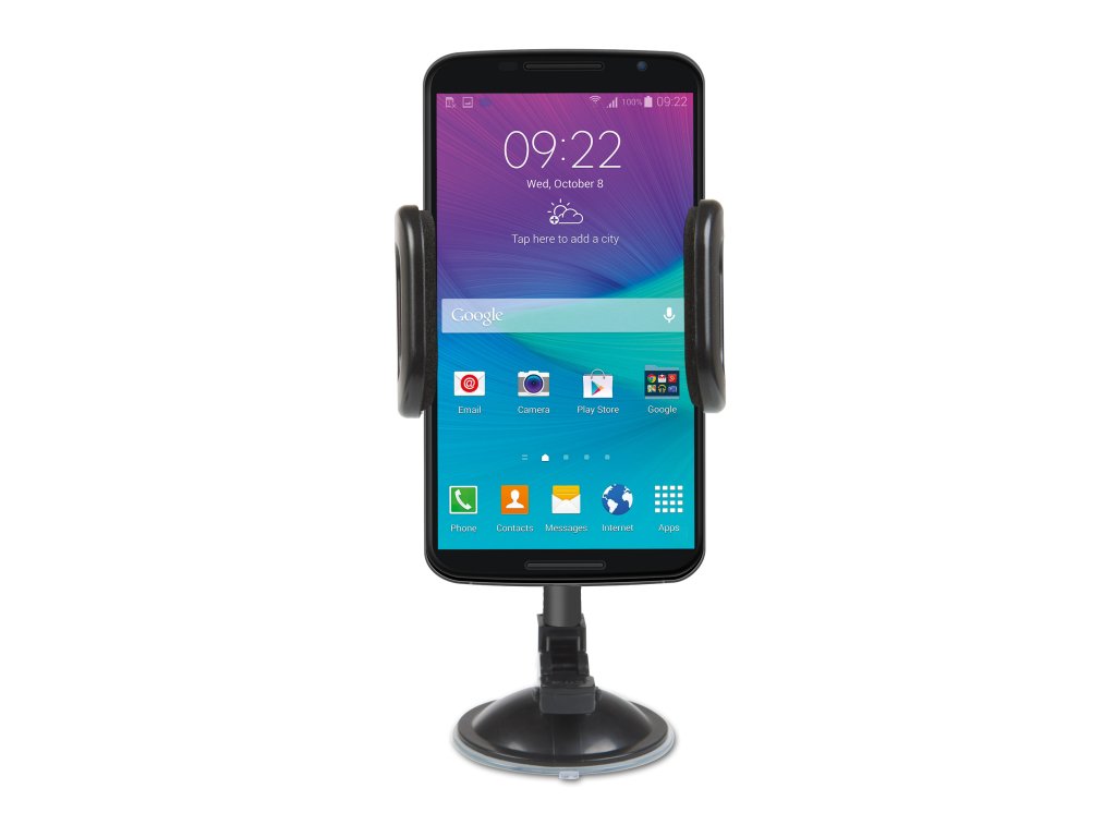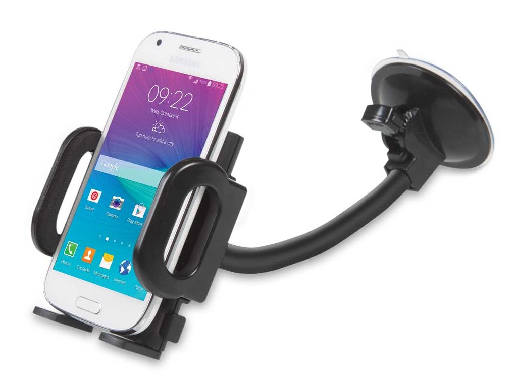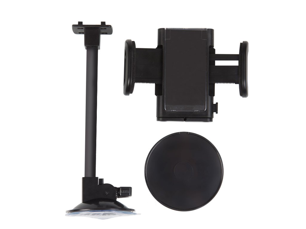 Univerzální držák je určen pro mobilní telefony, smartphone, navigace apod. s montáží na přední sklo vozidla. Snadné nastavení požadovaného úhlu pro optimální zobrazení.
