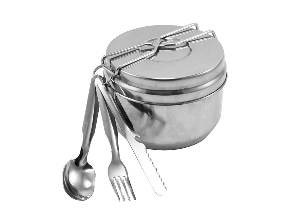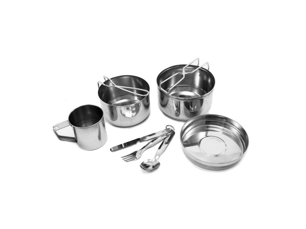 Sedmidílná kempingová jídelní souprava je ideální volbou pro malé i velké výpravy do přírody. Praktická sada tradičního ešusu z kvalitní nerezové oceli je doplněna o hrnek a příbor, takže máte vše potřebné pro stolování na cestách, při kempování, turistice nebo víkendových výletech.