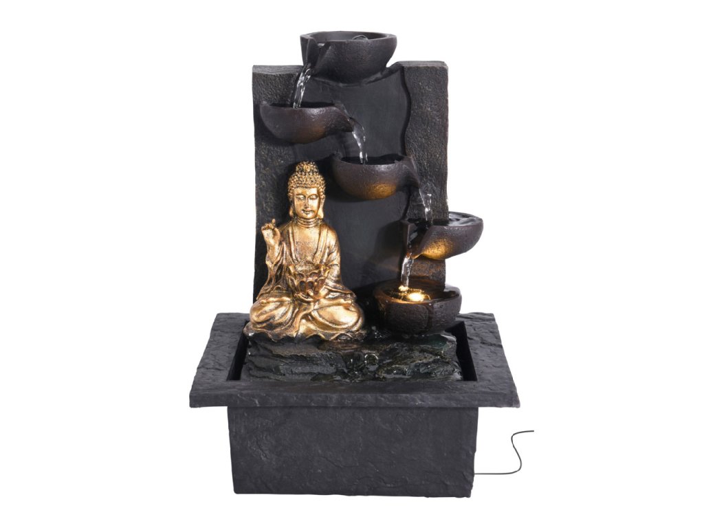Fontána Buddhy z umělého kamene s LED páskem o délce 1,5 m bude pěkným doplňkem v interiéru, kde vytvoří dokonalé místo k relaxaci. Dodá místu harmonii a styl. Svítí v teplé bílé barvě.