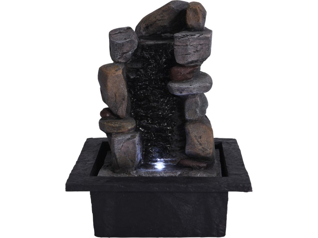 Stylová kamenná fontána s LED páskem je elegantním doplňkem pro váš domov, terasu nebo zahradu. Kombinuje přírodní vzhled kamene s jemným světlem v teplé bílé barvě, které vytváří příjemnou a relaxační atmosféru. Proud stékající vody po kamenech navozuje pocit klidu a harmonie, zatímco světelný efekt umocňuje dekorativní dojem i v nočních hodinách.