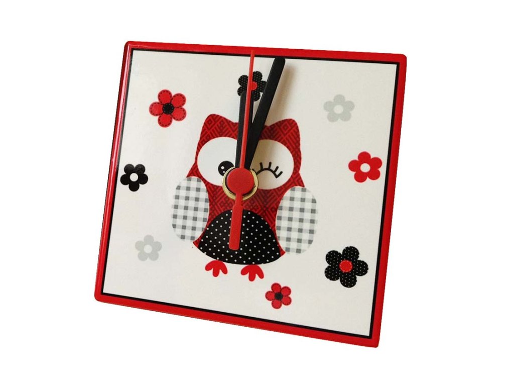 HOME ELEMENTS Hodiny 11 cm, Sova červená