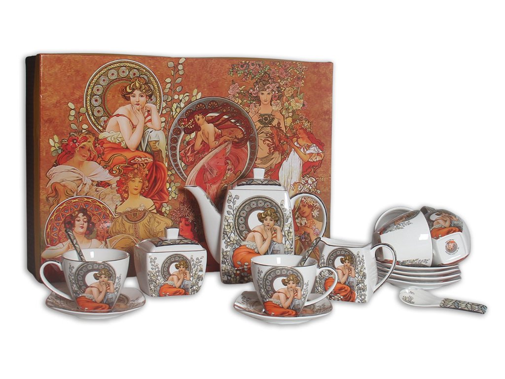 Exkluzivní porcelánová čajová souprava pro 6 osob dekorována replikou díla Alfonse Muchy bude ozdobou každé tabule.