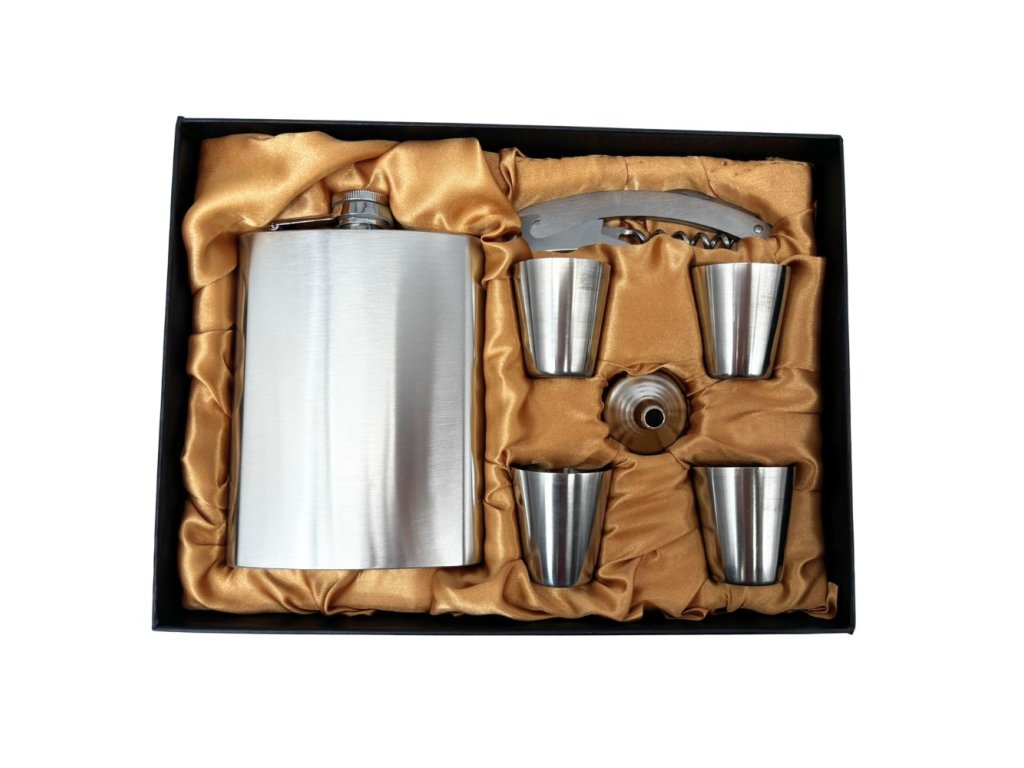 Tato stylová dárková sada je vynikajícím nápadem na dárek. Placatice má klasický design s nízkou hmotností pro snadnou a pohodlnou přepravu. Je vyrobená z kvalitní nerezové oceli a má šroubovací uzávěr, který zabraňuje jejímu vylití. Placatice sebou se vždy perfektně hodí na zahřátí, na výlety do přírody, pikniky nebo na ryby.