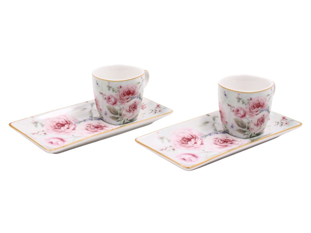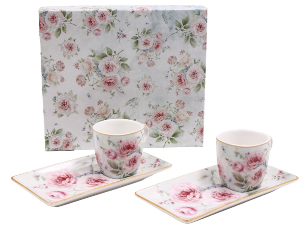 Espresso set s podtácky 2 x 65 ml, Růže