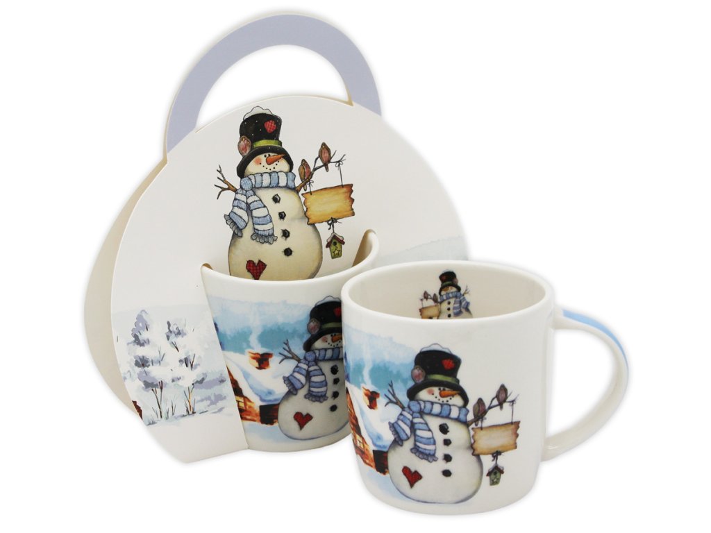 Porcelánový hrnek 300 ml v dárkové kartonové tašce s poutkem, Sněhulák