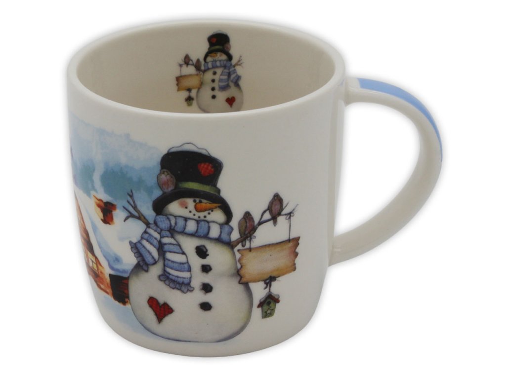 Krásně vykreslené a vybarvené sněhuláky najdete na porcelánovém hrníčku. Motiv pro zimní pohodu udělá radost dětem i dospělým.
