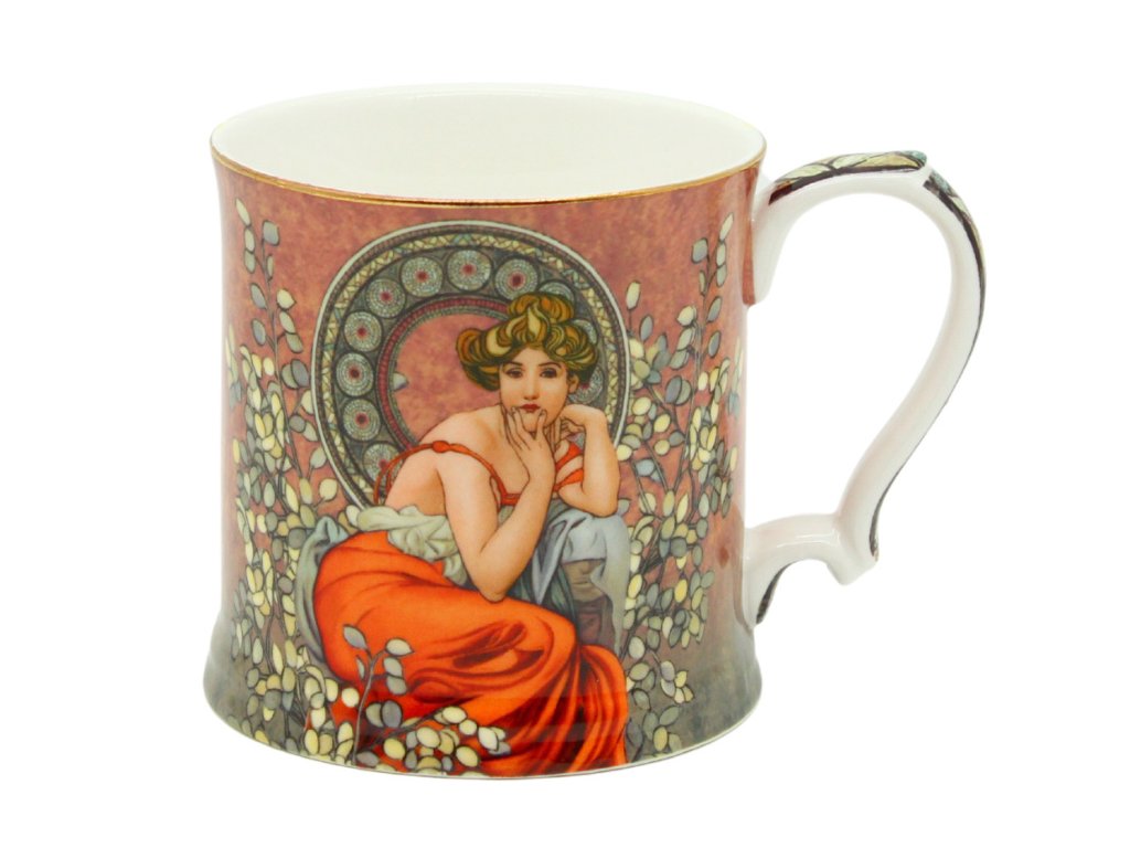 Elegantní porcelánový hrnek na čaj v klasickém tvaru, s tvarovaným ouškem a s dekorem v hnědém odstínu z dílny malíře Alfonse Muchy. Hodí se jak pro slavnostní tabuli, tak pro každodenní používání. Hrnek je uložen do dárkové krabičky, může být tím nejlepším dárkem pro přátele, kolegy nebo blízké. Takový hrnek na čaj udělá radost všem, kteří rádi používají hezké věci.