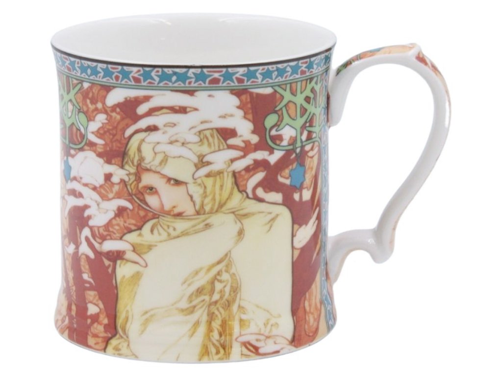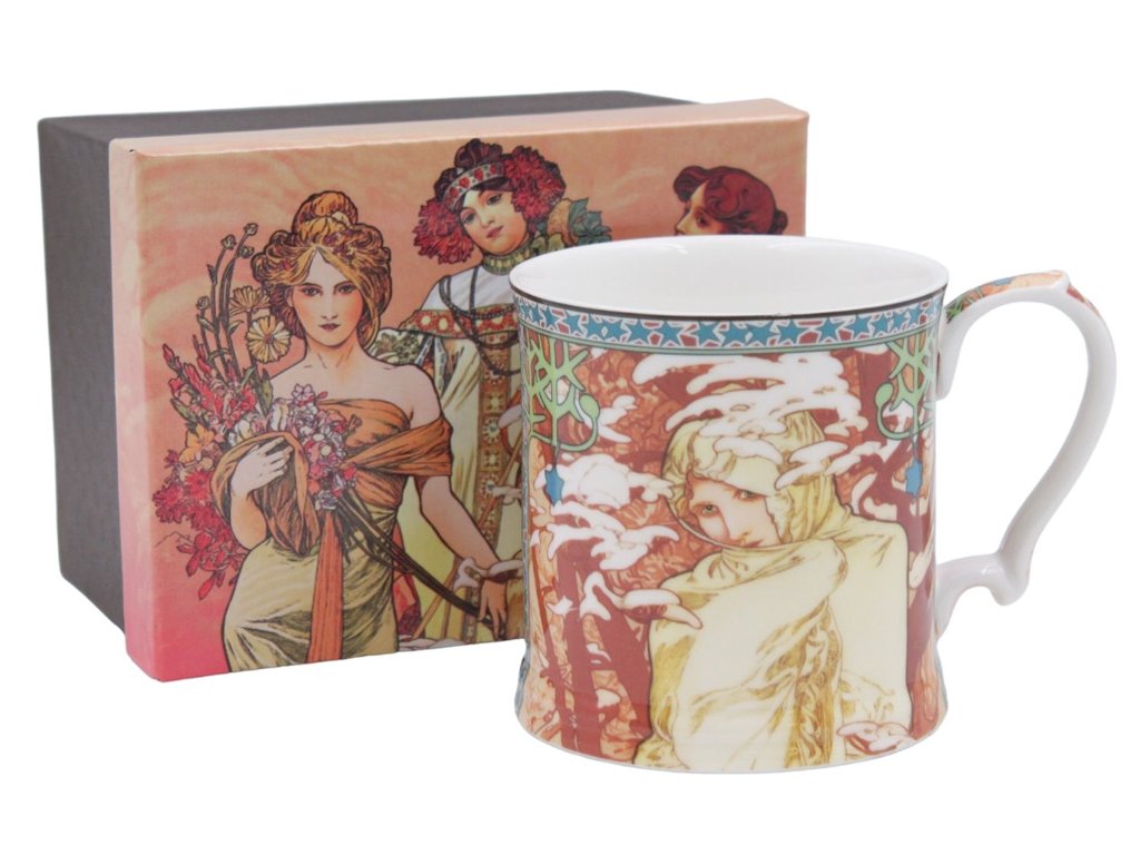 Elegantní porcelánový hrnek na čaj v klasickém tvaru, s tvarovaným ouškem a s dekorem v hnědém odstínu z dílny malíře Alfonse Muchy. Hodí se jak pro slavnostní tabuli, tak pro každodenní používání. Hrnek je uložen do dárkové krabičky, může být tím nejlepším dárkem pro přátele, kolegy nebo blízké. Takový hrnek na čaj udělá radost všem, kteří rádi používají hezké věci.