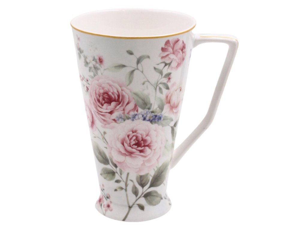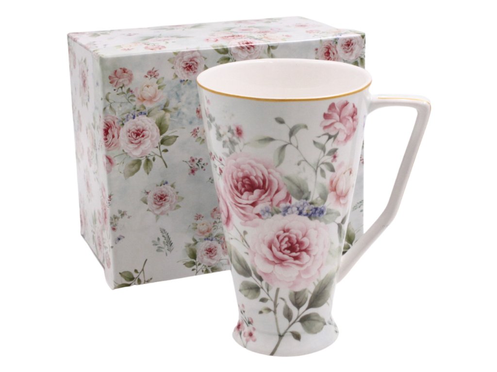 Jemný romantický dekor s květy růže na vysokém porcelánovém hrnku, který má originální tvar a je zabalen v krásném dárkovém balení. Hrnek se skvěle hodí na čaj, svařák, vídeňskou kávu nebo třeba horkou čokoládu.