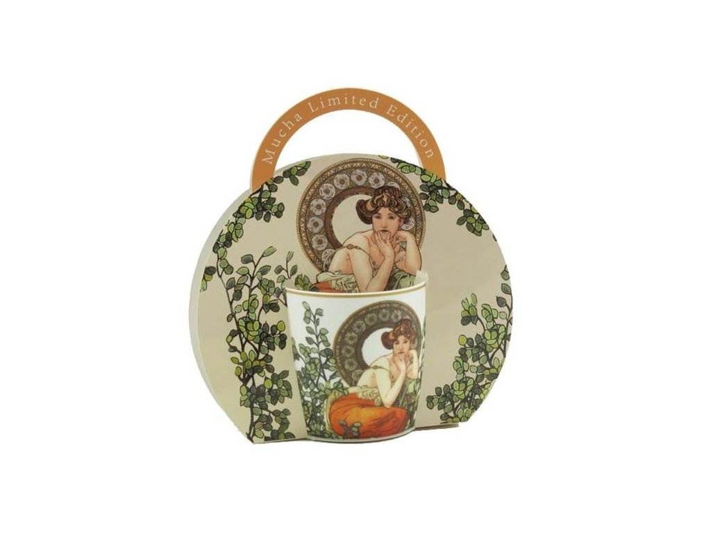 Krásný porcelánový hrníček s motivem slavného obrazu od Alfonse Muchy. Dodáváno v designovém kartonovém přebalu s odnosným poutkem.