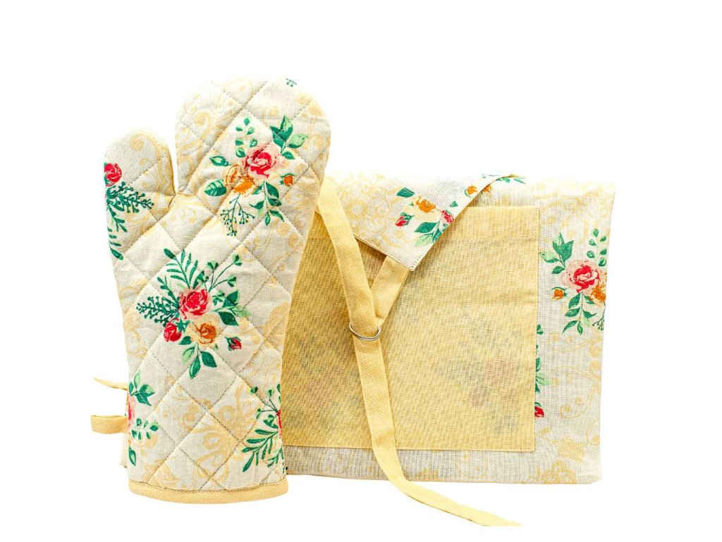 Dá se zkombinovat s dalším podobným kuchyňským textilem. Vše můžete mít ve stejných barvách a se stejnými motivy.