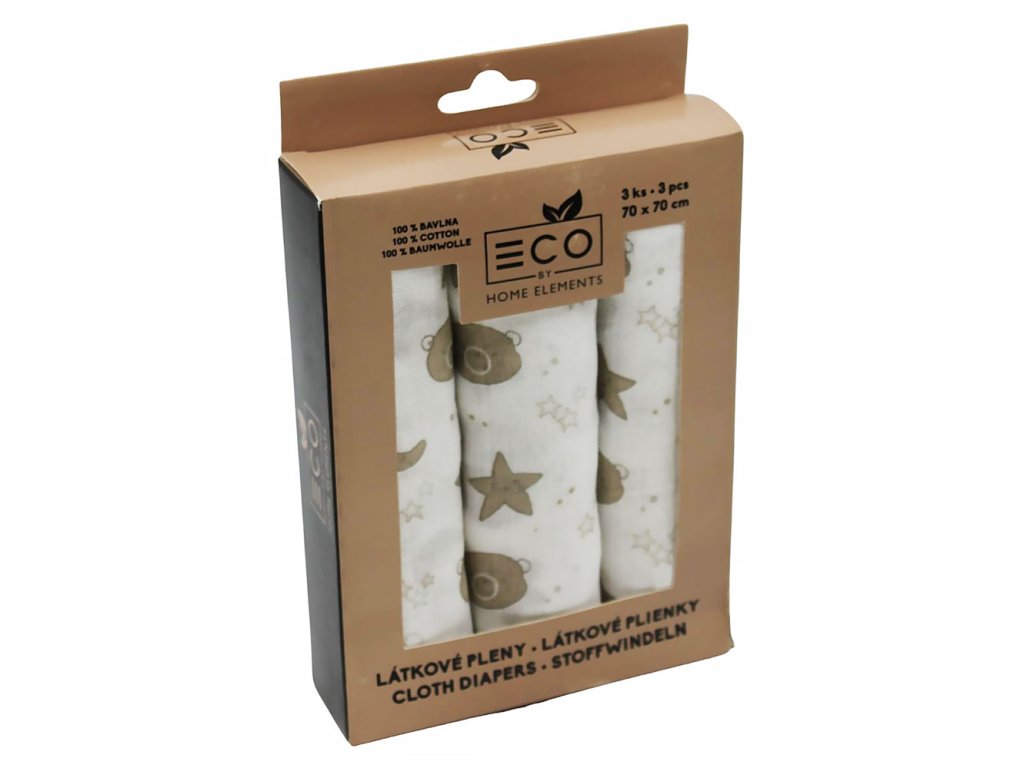HOME ELEMENTS Látkové pleny 70x70 cm, sada 3 ks, Medvídek a hvězdy