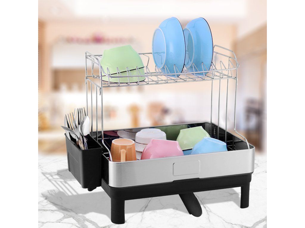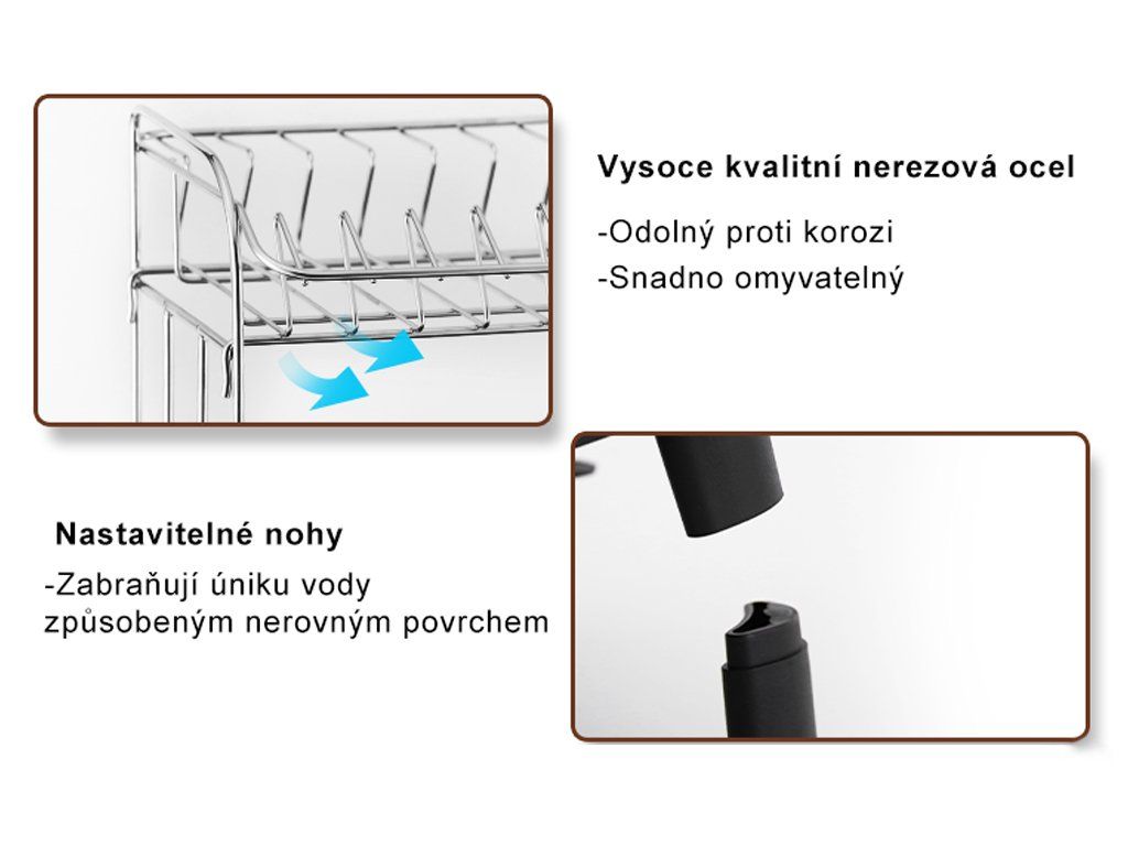 Praktický pomocník do každé domácnosti. Moderní multifunkční a stabilní odkapávač na nádobí s nástavcem pojme dostatečné množství umytého nádobí a zároveň šetří místo na kuchyňské lince. Velkou výhodou je nastavitelná výška, díky které si odkapávač snadno přizpůsobíte svým potřebám.