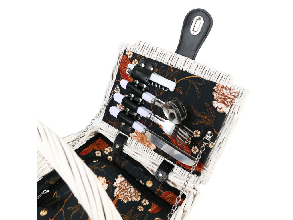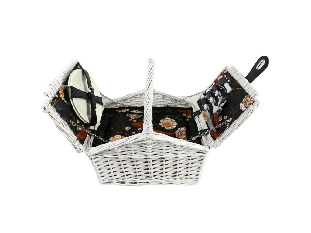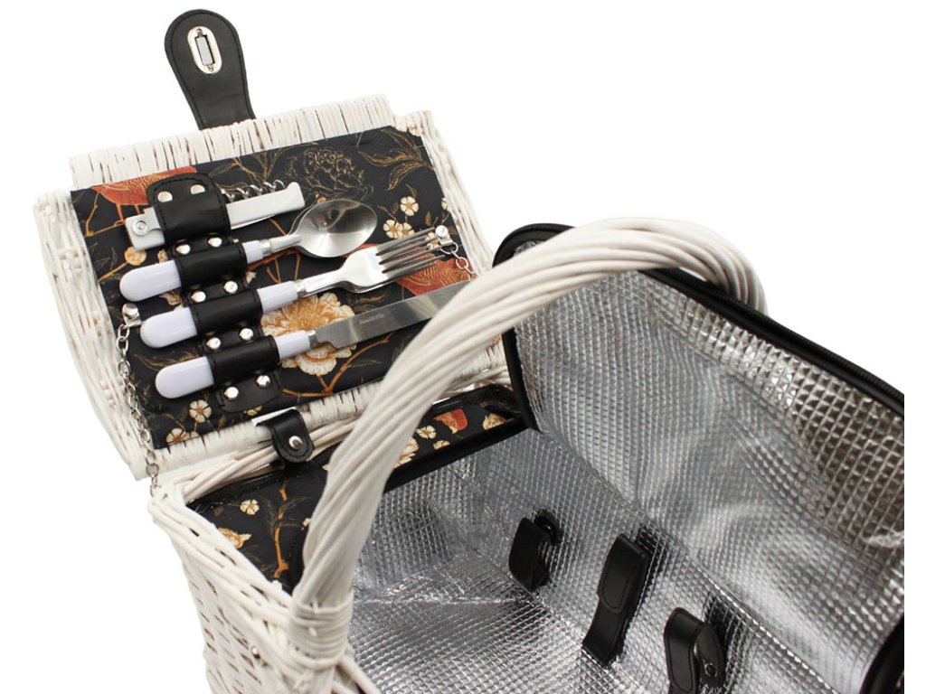 Proutěný koš na piknik pro 2 osoby, pro skvělou snídani, oběd nebo třeba večeři v trávě. Koš je skvěle připraven na pořádný piknik. Uvnitř najdete talíře, sklenice, příbory i slánku s pepřenkou. Koš se otvírá ze shora, takže se nemusíte bát, že se vám jídlo vylije nebo vysype.