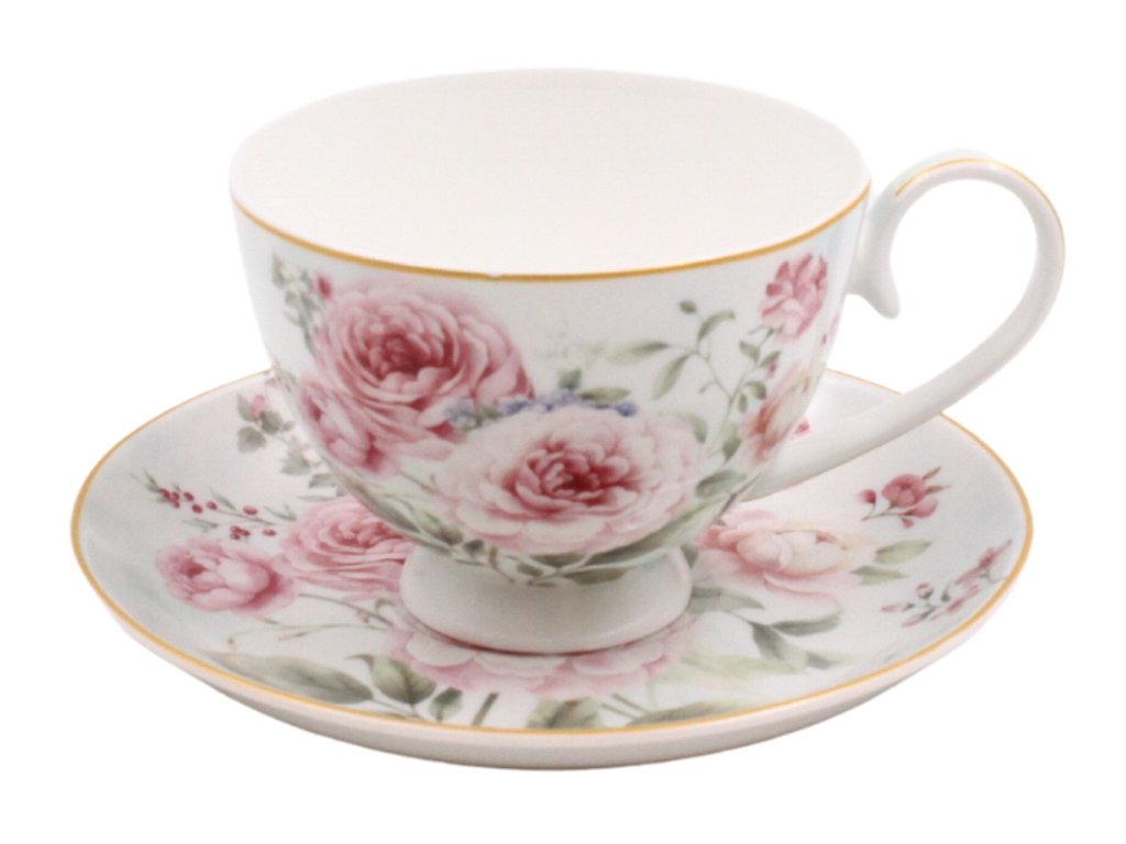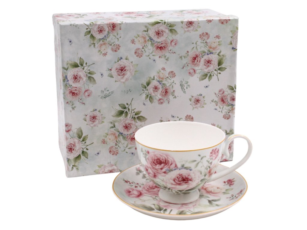 Krásný dekor jemných kvítků růže na porcelánovém hrníčku. Vhodný na čaj i kávu, bude ozdobou každého stolu.