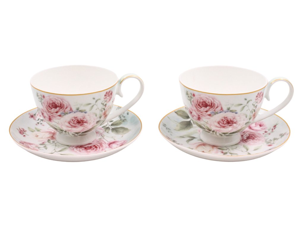 Šálky s podšálky 2 x 250 ml, Růže