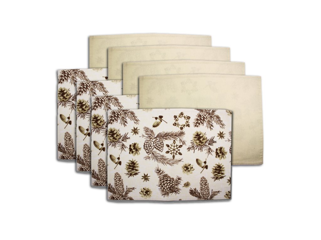 - z jedné strany čistě béžové, z druhé strany s motivem zimních šišek