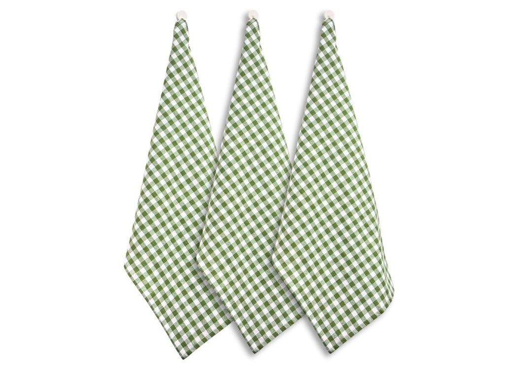 Sada 3 kusů bavlněných utěrek s károvaným vzorem v zelené barvě. Utěrky doporučujeme před prvním použitím vyprat, lépe pak plní svou funkci savost.