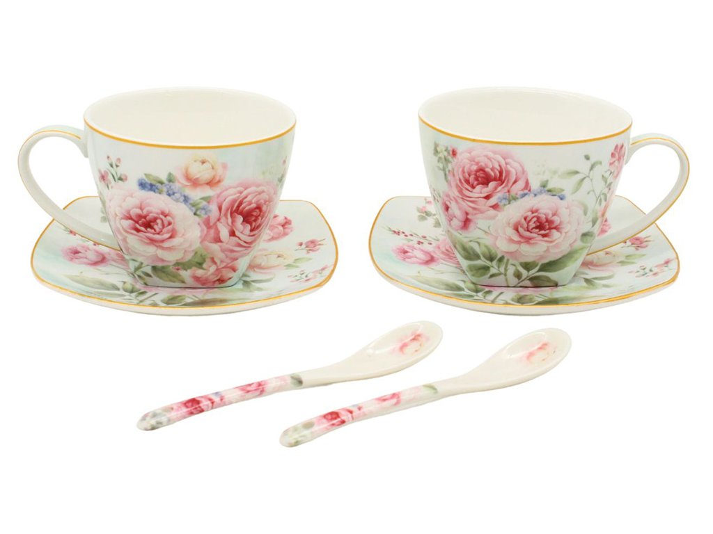 Šálky s podšálky a lžičkami 2 x 250 ml, Růže