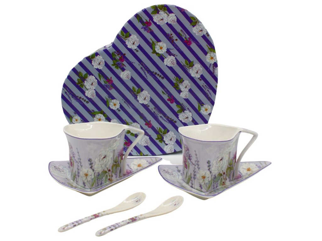 Exkluzivní porcelánový set v bílé barvě zdobený jemnými kvítky růže a levandule. Je povznášející vychutnávat si čaj nebo kávu z tak krásného šálku. Sada je poskládaná do dárkové krabičky. Pokud chcete někomu věnovat, nemusíte si dělat starosti s hezkým balením. Stačí krabičku ozdobit mašlí nebo dát do dárkové tašky.