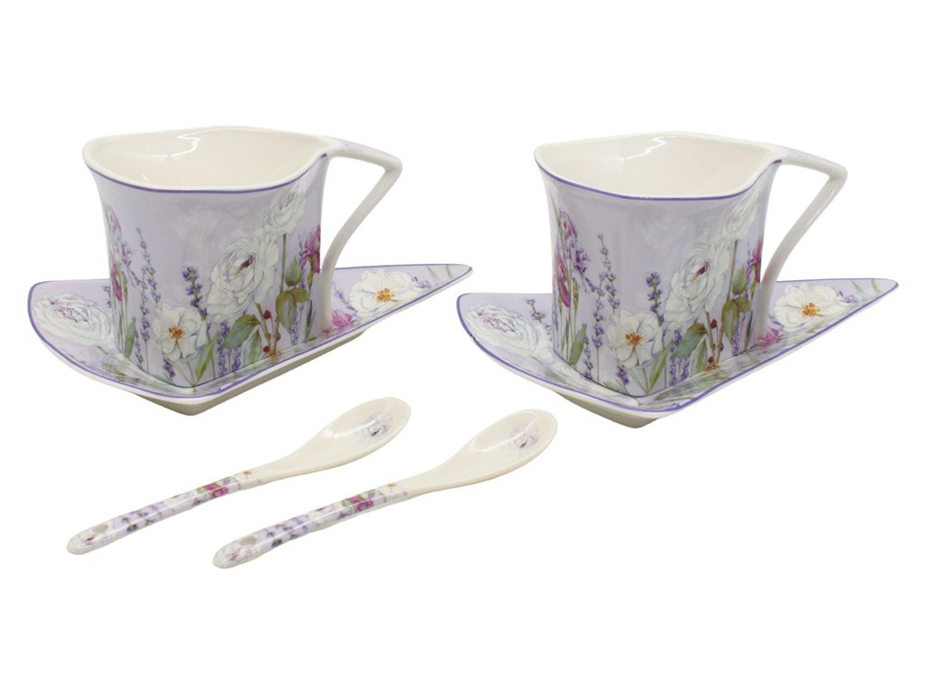 Šálky s podšálky a lžičkami tvarované 2 x 250 ml, Levandule